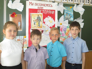 УЧНІ КЛАСУ ЩИРО ПРИВІТАЛИ ВЕТЕРАНА ВІЙНИ З ДНЕМ ПЕРЕМОГИ ТА ПОБАЖАЛИ МИКОЛІ ПАВЛОВИЧУ МІЦНОГО ЗДОРОВ" Я ТА ДОВГИХ РОКІВ ЖИТТЯ ! Перед вікнами класу посадили нарциси у вигляді земної кулі " НІКОЛИ ЗНОВУ " |